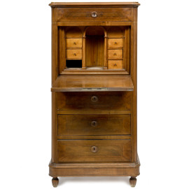 Mobile secretaire con ribalta frontale, tre cassetti inferiori e uno superiore