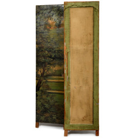 Separé in legno dipinto e laccato. Al fronte veduta di villa dai giardini, XX secolo, cm 200x150, (difetti)