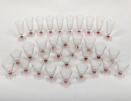 Servizio di bicchieri in vetro trasparente e rosa, XX secolo, (difetti)