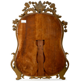 Specchiera in legno intagliato e dorato con cornice di forma sagomata, XX secolo, cm 96x66, (difetti)
