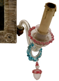Specchiera veneziana in vetro di Murano con due bracci per la collocazione di punti luce, cm 60x40, XX secolo, (difetti)