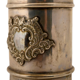 Termos rivestito in argento, XX secolo, altezza cm 18, peso lordo gr. 490