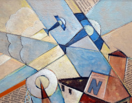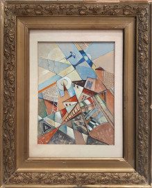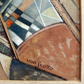 Ugo Scotto (XX sec.)Aeropittura, tecnica mista su tavola, cm 28x21, firmato in basso a destra, con cornice