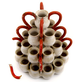 Vaso Art Deco ad anfore in ceramica smaltata, anni Cinquanta del XX secolo, cm 26x22x22 (difetti e rotture)