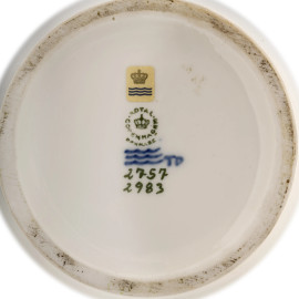 Vaso in ceramica Royal Copenaghen Denmark decorata con chiesa sulle rive di un fiume, seconda metà del XX secolo, difetti, altezza cm 33