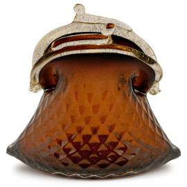 Vaso in cristallo tagliato a mano nei toni dell'ambra, Manifattura di Murano, XX secolo, cm 17x19x13,5 (difetti)