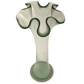 Vaso in vetro nei toni del verde con orlo a fazzoletto, altezza massima cm 35 (difetti)
