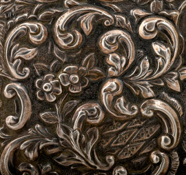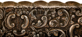 Vassoietto in argento cesellato e sbalzato a intricati motivi vegetali, cm 1,5x22x10,5, gr.130