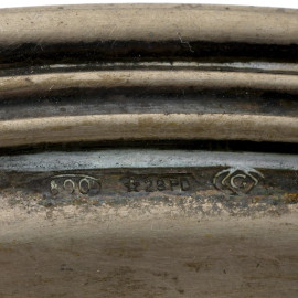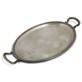 Vassoio a doppia presa in argento 800/000, punzone 29 PD Greggio Rino, cm 43x25, peso gr 550, (difetti e segni di ossidazione)