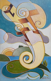 Achille Boni (XX sec.) Aeropittura, olio su tavola, cm 28,5x18, firmato in basso a destra, con cornice