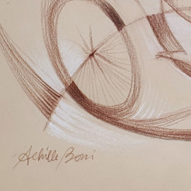 Achille Boni (XX sec.) Velociclo, tecnica mista su carta, cm 24x29, firmato