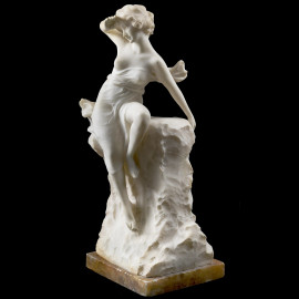 Adolfo Luchini (XIX secolo), Giovane donna su una roccia, scultura in marmo, cm 45x22x16, firmato al retro, (difetti)