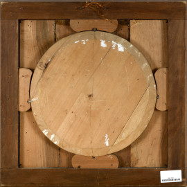 Angeli musicanti, XX secolo, tempera su tavola, diametro cm 34, entro cornice, (difetti)
