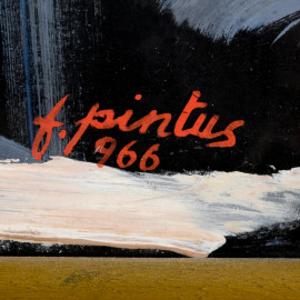 Astratto, tecnica mista su carta, cm 67x47 entro cornice, XX secolo, firmato in basso a destra "Pintus 966", (difetti)