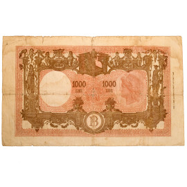 Banconota da 1000 lire "Italia su prora di nave" - serie W3186, mm 205x115, (difetti)