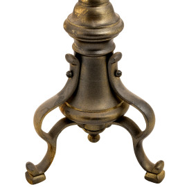 Candeliere con fusto tornito in metallo argentato montato a lampada, poggiante su 3 gambe mosse, XX secolo, altezza cm 87, (difetti)