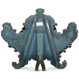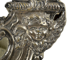 Cantagloria montata a specchiera con cornice in metallo argentato, cm 56,5x70, (difetti)