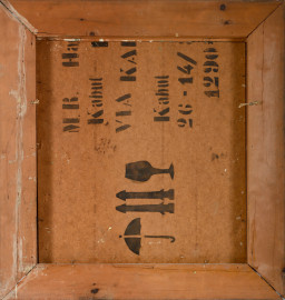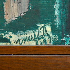 Case a Kabul, acrilico su tela applicata su compensato, XX secolo, cm 55,5x50,5 entro cornice, (difetti)