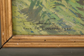 Cava dei Tirreni, tecnica mista su cartone, XX secolo, cm 48,5x32, (entro cornice) firmato e titolato "Cava dei Tirreni 1920" in basso a sinistra, (difetti)