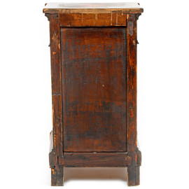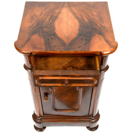 Comodino in noce con un cassetto e uno sportello al fronte, XX secolo, cm 82x44x37, (difetti)