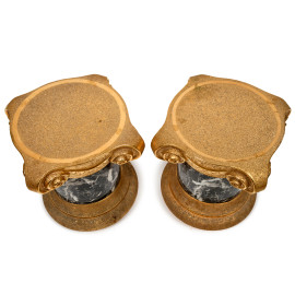 Coppia di basi in ceramica a guisa di colonne dorate e dipinto a finto marmo, XX secolo, cm 46x46,5x35,5, (difetti)