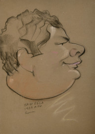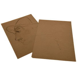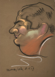 Coppia di caricature di uomo, pastelli su carta, cm 31x22,5, XX secolo (difetti)