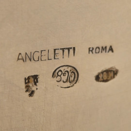 Coppia di portabottiglie in argento 800/000 cesellato e traforato, cm 13,5x10,peso complessivo gr 490