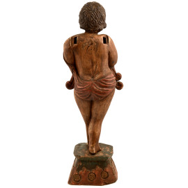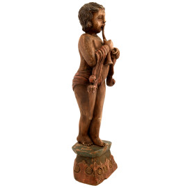 Coppia di sculture in legno policromo raffiguranti putti musicanti, XIX secolo, altezza cm 76, (difetti)