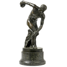 Discobolo, bronzo su base in marmo, XIX-XX secolo,altezza cm 48, (difetti)