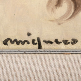 Giuseppe Migneco, Pescatore, tecnica mista su tela, XX secolo, cm 60x40, entro cornice, firmato in basso a sinistra e al retro "Migneco", (difetti)