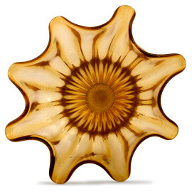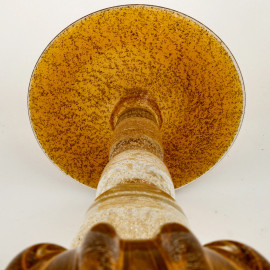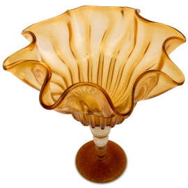 Grande vaso a calice con orlo a fazzoletto in vetro di Murano nei toni dell'oro e dell'ambra, XX secolo, altezza cm 51, apertura cm 43, (difetti)