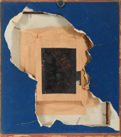 Icona con quattro santi, tempera su tavola, XIX secolo, cm 12,5x9,entro cornice, (difetti)