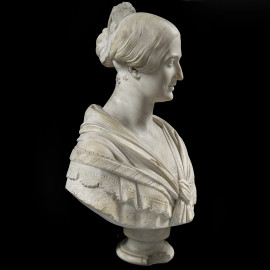 Innocenzo Fraccaroli ( Verona 1805- Milano 1882), Nobildonna, scultura in marmo, altezza cm 73, firmato e datato al retro "1848" (difetti, scheggiatura alla base)