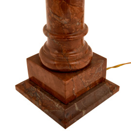 Lampada da tavolo con struttura in marmo rosso e paralume in tessuto bianco, XX secolo, altezza cm 77, (difetti, da revisionare)