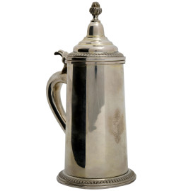 Lotto composto da due boccali in argento cesellato con interno vermeil di foggia diversa, peso complessivo gr 710, misura massima cm 19,5x14,5x8,5