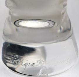 Lotto composto da due piccoli portafiori Lalique con decori a rilievo e piccolo volatile, firmati al graffio, misure massima cm 15x12,5 (difetti)