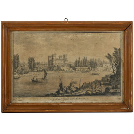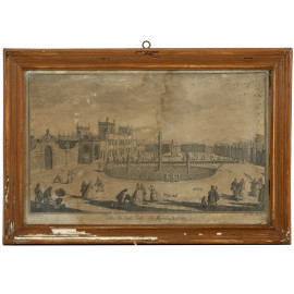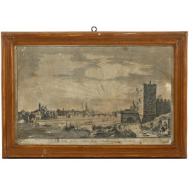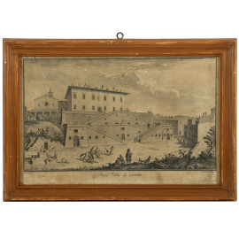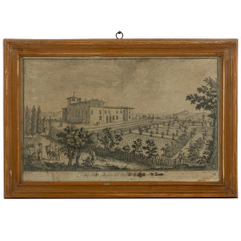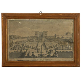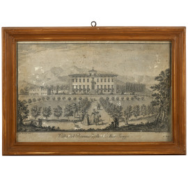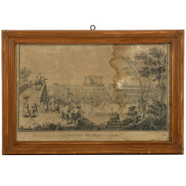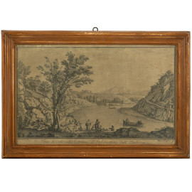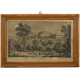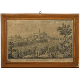 Lotto di 12 incisioni con vedute, XVIII secolo, cm 32x49, entro cornice, (difetti, segni di umidità e gore)