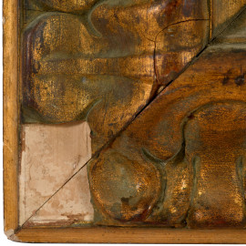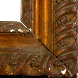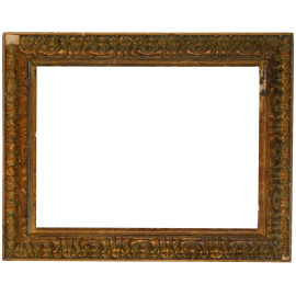 Lotto di 2 cornici in legno intagliato, XX secolo, (difetti, mancanze), ingombro cm 82x65 e 84x69, battente cm 65x48 e 63x47