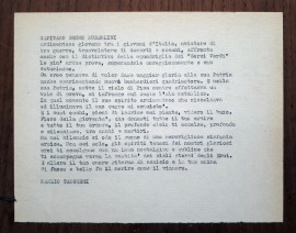 Manlio Tancredi (XX sec.) Capitano Bruno Mussolini aviatore ardimentoso, aeropittura a tecnica mista su tavola, cm 28x39, firmato in basso a sinistra. Al retro reca testo esplicativo dell’opera redatto dall’Autore su foglio dattiloscritto