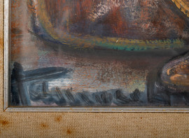 Natura morta, olio su cartoncino telato, cm 30x40 entro passepartout e cornice, (difetti)