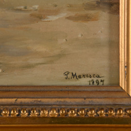 P. Maresca, Fanciulla, olio su tavola, cm 32,5x19 entro cornice, (difetti)