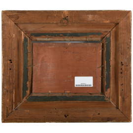Paesaggio al tramonto, olio su tavola, cm 15,5x21,5 entro cornice, (difetti)
