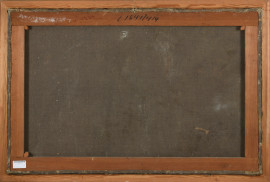 Paesaggio con figure e armenti, olio su tela, XVIII secolo, cm 70x108 entro cornice, (difetti)