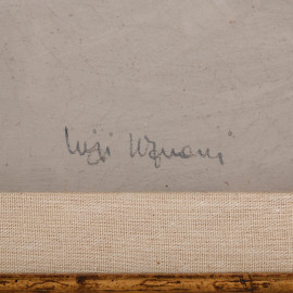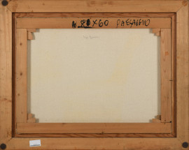 Paesaggio innevato, olio su tela, XX secolo, cm 60x80, entro cornice, firmato in basso a destra, (difetti)
