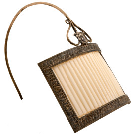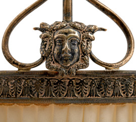 Paralume di centilena in argento e stoffa finemente lavorato a cesello con maschera di Medusa, cm24x15,5x19, peso lordo gr 230