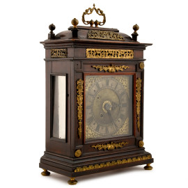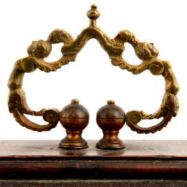 Pendola da tavolo con struttura in legno e inserti in metallo dorato. Quadrante circolare in metallo dorato con numeri romani, cm 44x30,5x16,5, (difetti, da revisionare)