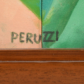 L'opera si presenta realizzata su due tele con rispettivi telai entro un'unica cornice