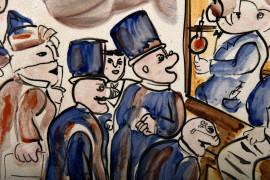 Piatto in ceramica dipinta e smaltata firmata Borghese, esemplare 116/250, diametro cm 53, (difetti)