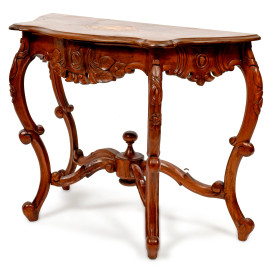 Piccola consolle da muro in noce, XX secolo, cm 79x45x105, (difetti)