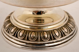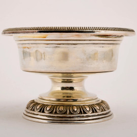 Piccolo porta bon bon di forma circolare in argento cesellato e sbalzato, cm 9x13,5, peso gr 198